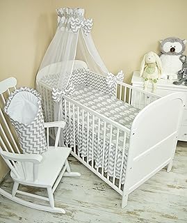 Amilian® Baby Bettwäsche 5tlg Bettset mit Nestchen Kinderbettwäsche Himmel 100x135cm NEU Pünktchen grau Chiffonhimmel