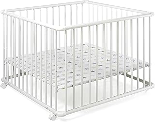 Geuther - Laufgitter Euro-Parc +, TÜV geprüft, höhenverstellbar, klappbar, geposlterter Boden, Schlupfsprossen, Teppichrollen, groß, 97 x 97 cm, weiß, Sterne 2