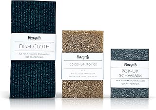 6-teiliges Schwamm-Set nachhaltig | 100% kompostierbar| für Küche und Bad | Margrets | Schick und biologisch abbaubar | 2X Pop-Up Schwamm und 2X Spültuch aus Zellulose …