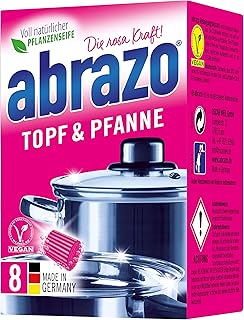 abrazo Topf & Pfanne Reinigungskissen antibakteriell Reinigungs-Schwamm Topfreiniger Grillreiniger & Backofen-Reiniger Stahlwolle vegan 8 St