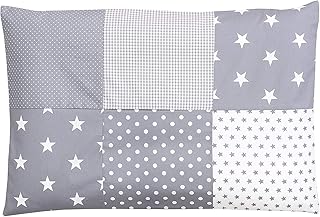 ULLENBOOM ® Kissenbezug 40x60 Kinder & Baby Graue Sterne (Made in EU) - Kopfkissenbezug aus Baumwolle mit Reißverschluss, Bezug auch für Dekokissen geeignet, Motiv: Sterne, Patchwork Design